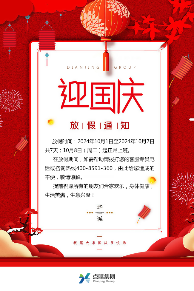 濰坊點睛網絡科技有限公司放假通知2024-09-30放假時間:2024年10月1日至2024年10月7日,共7天;10月8日(周二)起正常上班。 在放假期間,如需幫助請撥打您的客服專員電話或咨詢熱線400-8591-360,由此給您造成的不便,敬請諒解。在這里我們懷...